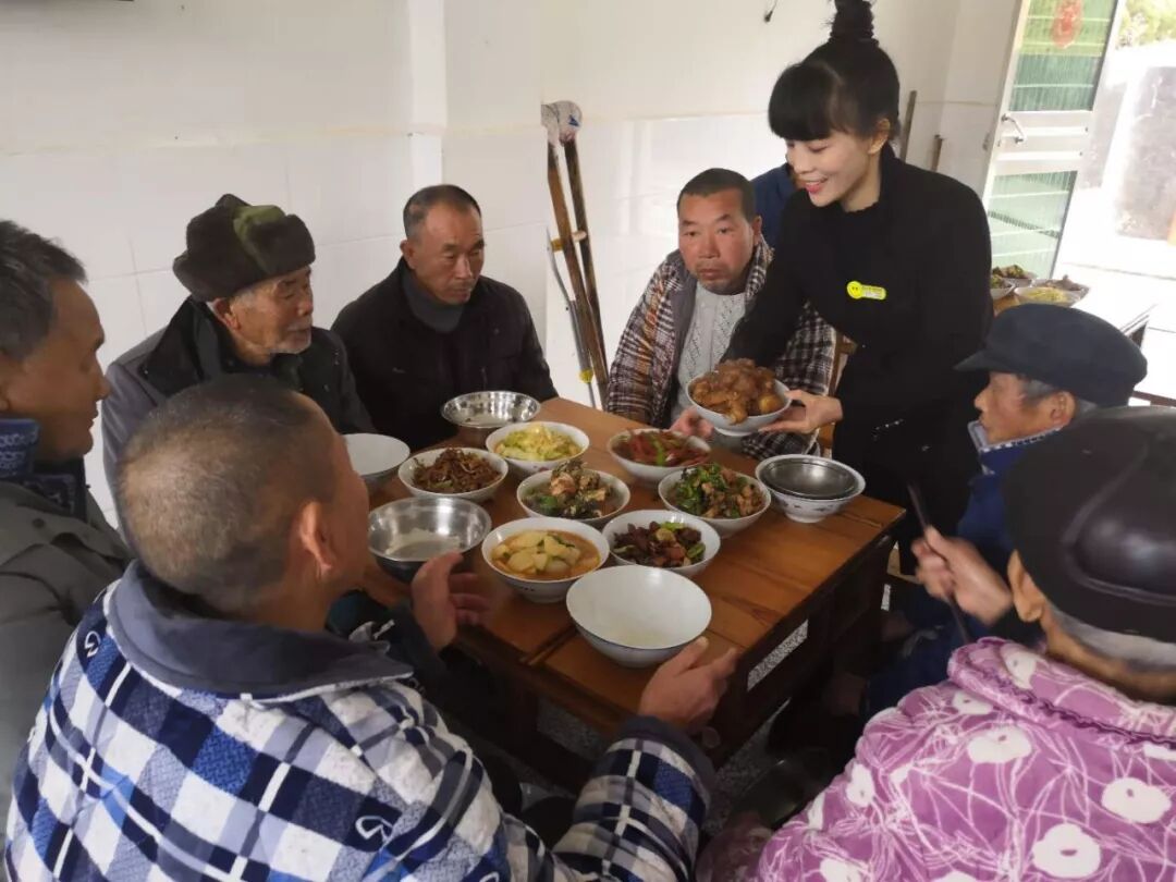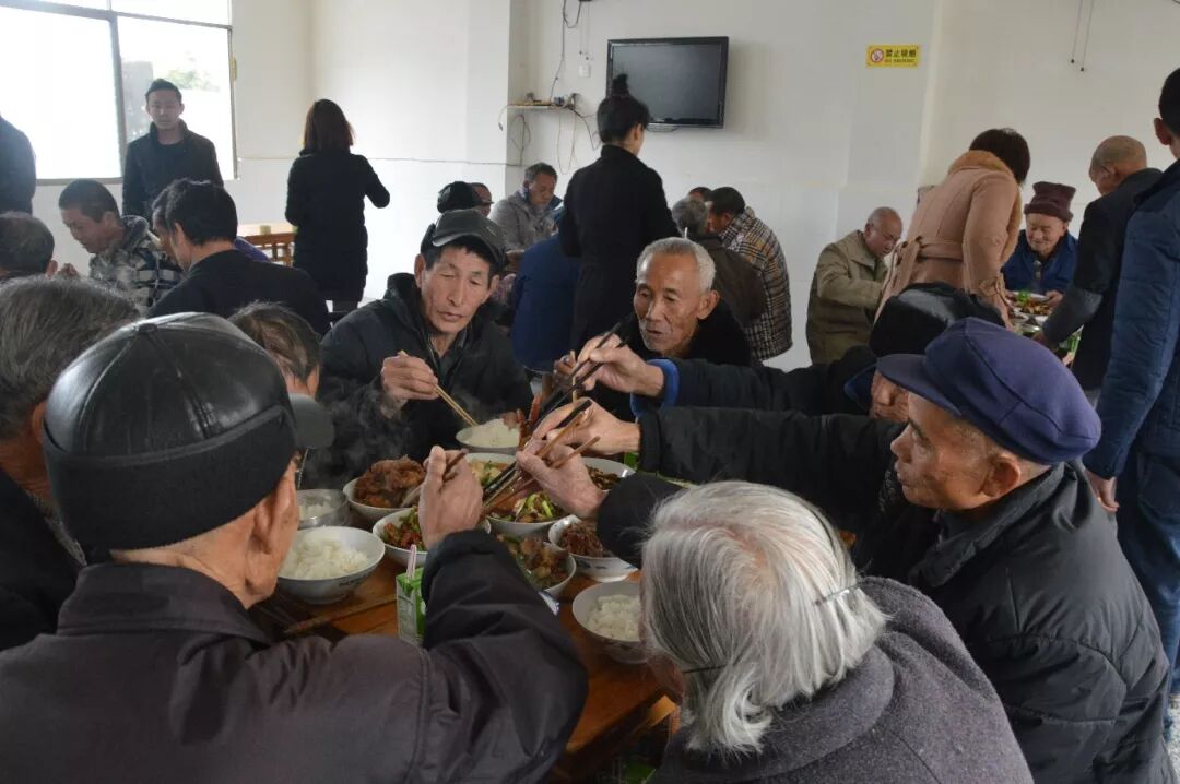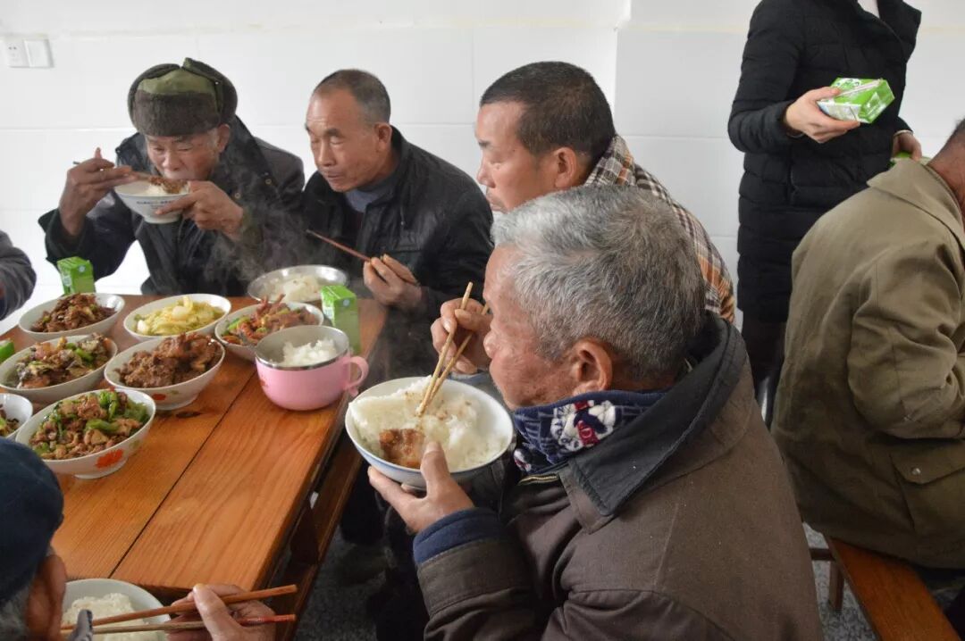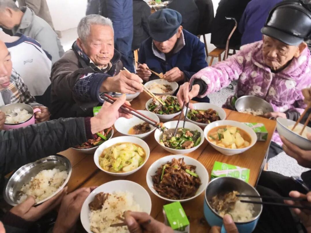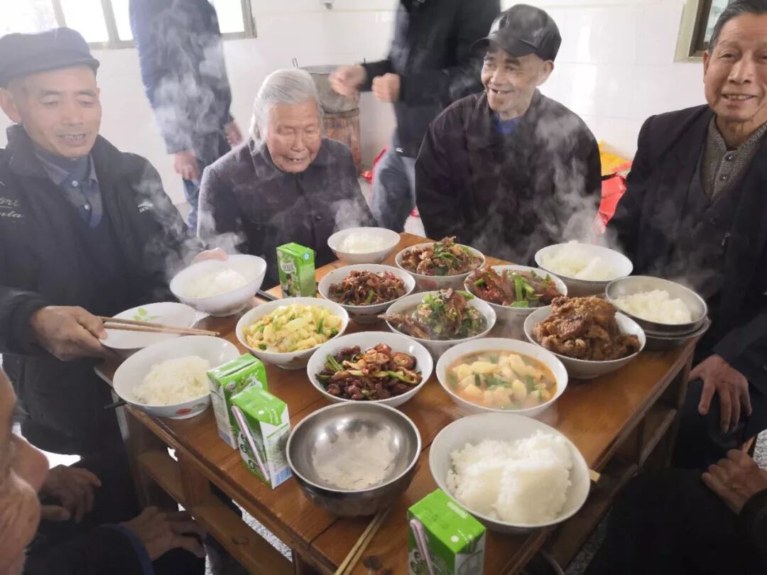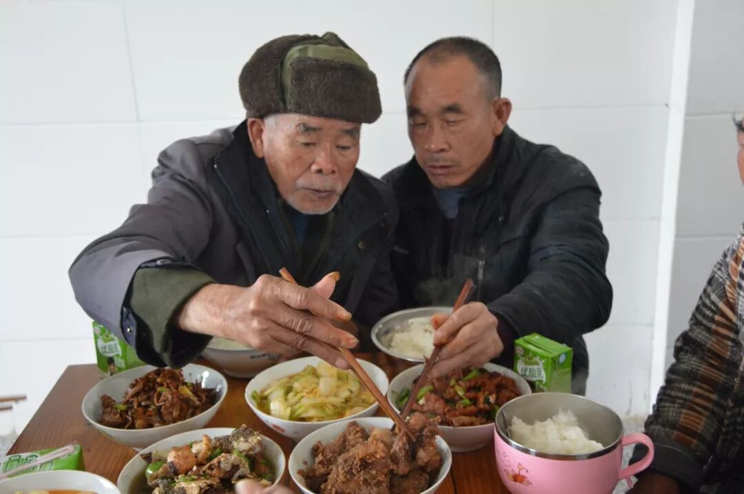 看着这一桌热气腾腾的饭菜,老人们喜笑颜开