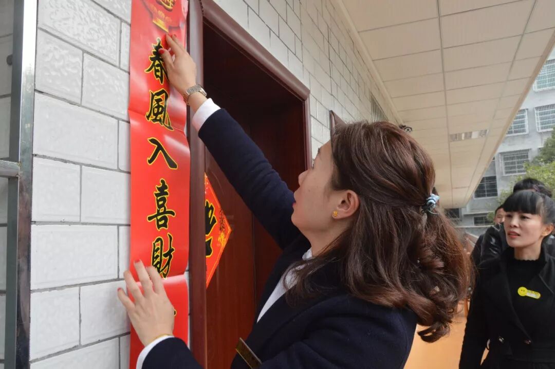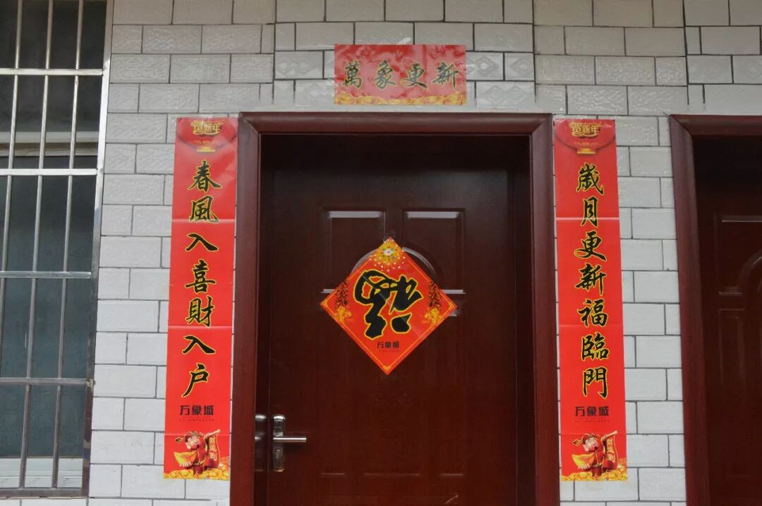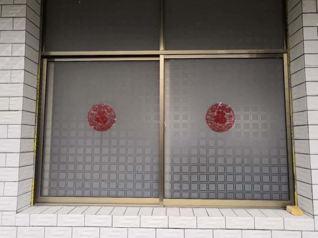 贴好的对联和窗花让敬老院里多了过年喜庆
