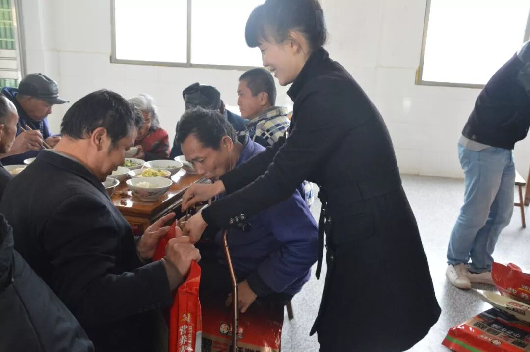 “来,来,各位老人,新年快到了,祝大家新年快乐,身体健康,长命百岁……”,在万象地产陶总的招呼声中,宜潭敬老院的年夜饭开始了。